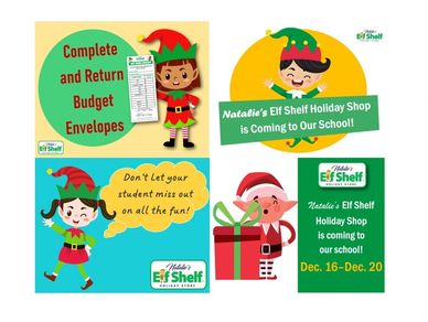 We offer multiple social media images to post on all social media platforms to help your school advertise that Natalie's Elf Shelf Holiday Store is at your school.