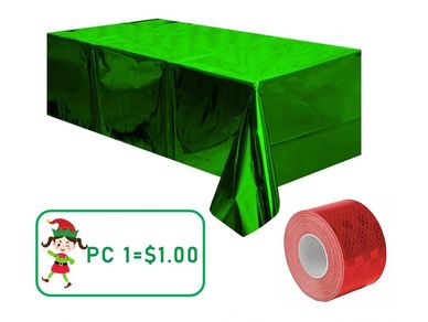 Also included in your free supply kit will be 5 shiny green tablecloths, metallic tape to help separate price groups and price stickers to put on tables.